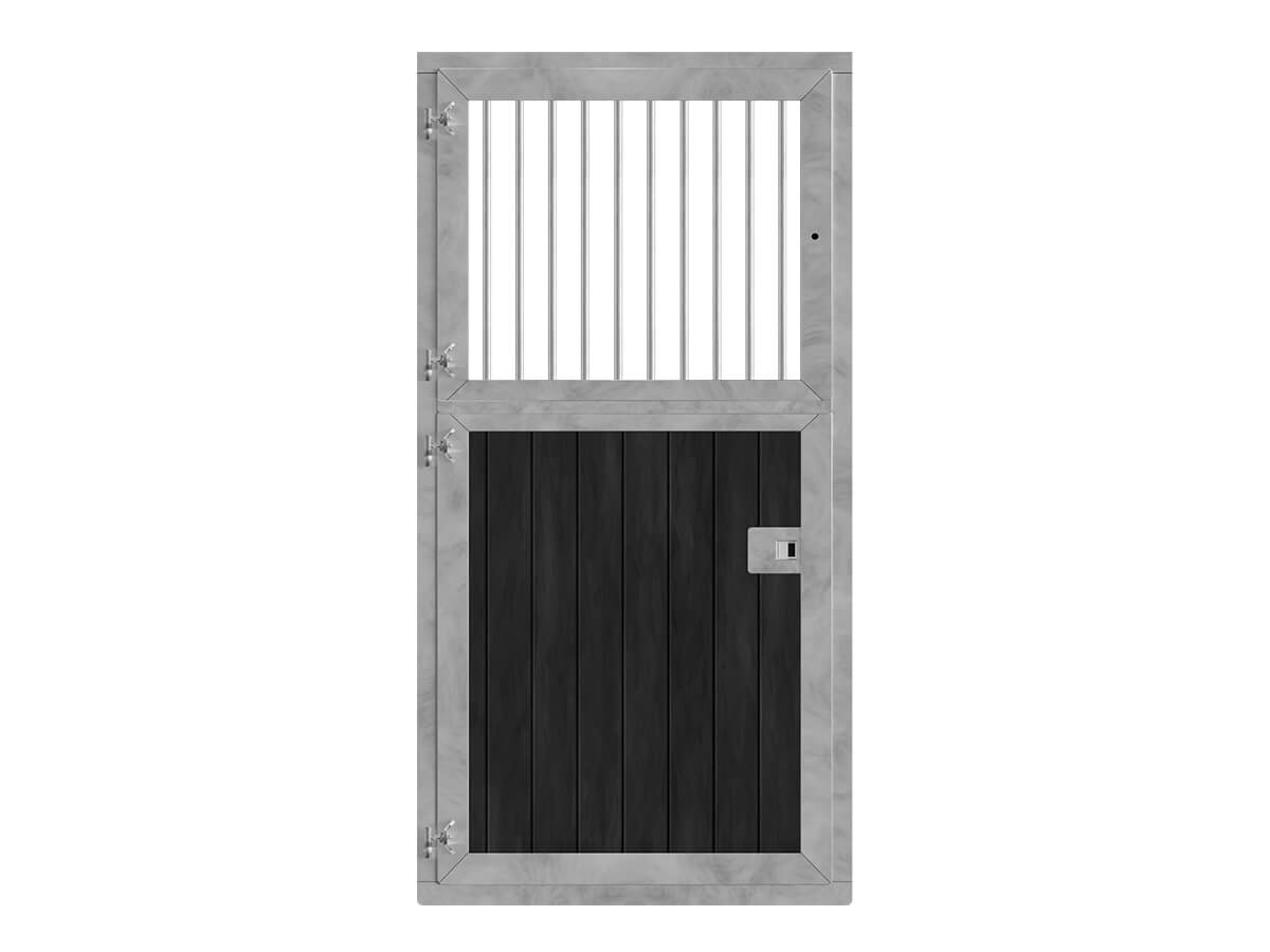 De standaard paddock deur uit voorraad is een veelzijdige standaarduitvoering waarbij de afmeting en constructie zijn afgestemd op intensief stalgebruik en veiligheid, zonder compromissen. De staldeur heeft een speciaal gewalst kozijnprofiel (100 mm diep) voor extra stevigheid en stabiliteit. Door de RVS nastelbare scharnieren kan de hoogte van de deuren nauwkeurig worden ingesteld. De paddockdeur is standaard voorzien van een spijlenrooster, waardoor optimale veiligheid voor paarden wordt gewaarborgd. Tevens kunt u optioneel kiezen voor een uitvoering met draai-kiepfunctie.